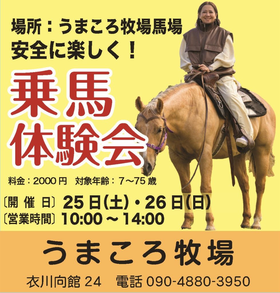 10月25日(土)、26日(日)に乗馬体験会を開催いたします。
